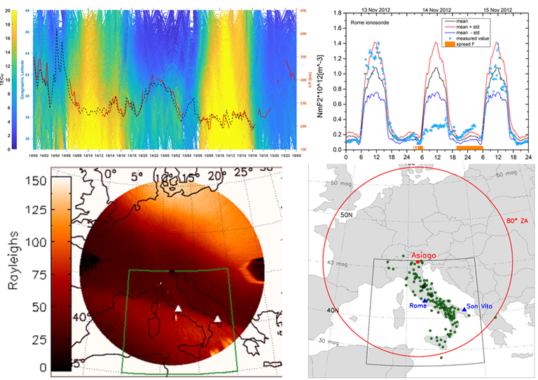 - Cesaroni, C., Alfonsi, L., Pezzopane, M., Martinis, C., Baumgardner, J., Wroten, J., ... & Umbriaco, G. (2017). The First Use of Coordinated Ionospheric Radio and Optical Observations Over Italy: Convergence of High‐and Low‐Latitude Storm‐Induced Effects. Journal of Geophysical Research: Space Physics, 122(11), 11-794.